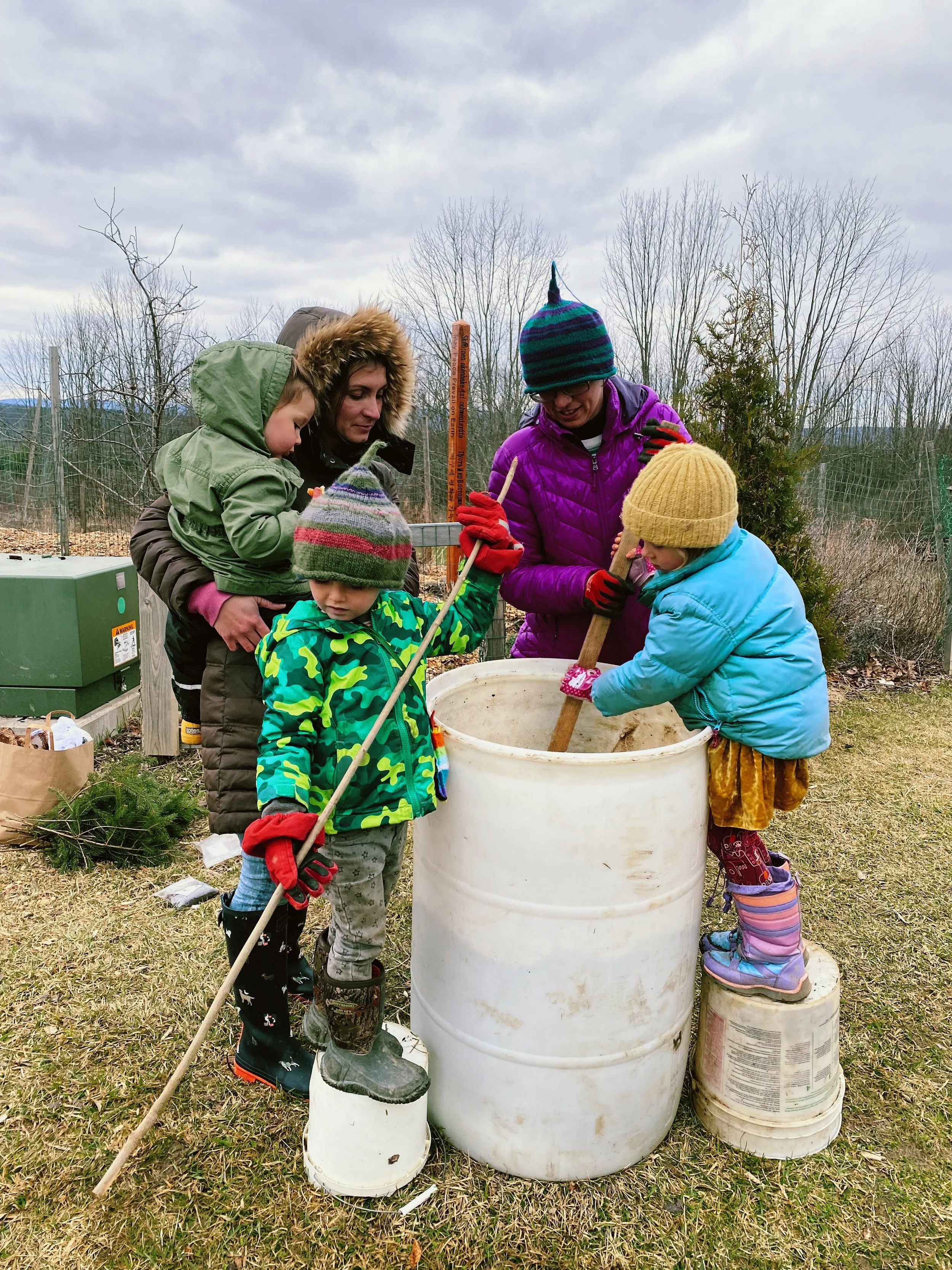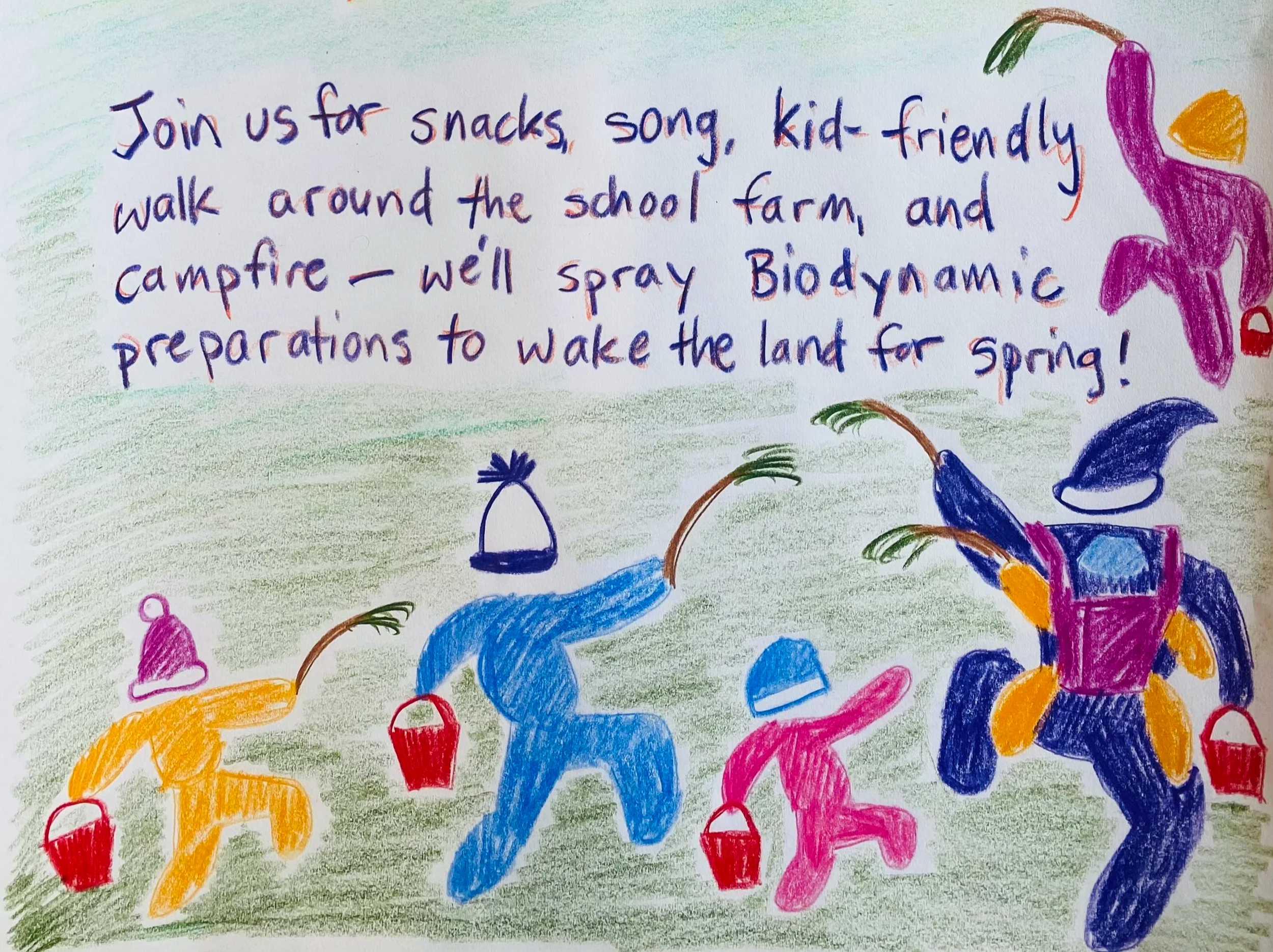 Around the spring equinox each year, we invite our IWS community to join us for a perimeter walk with local Biodynamic farmers around some of the school property, sprinkling Biodynamic preparations as we go, to wake the farm for spring! This is based on an old English tradition of teaching youth the boundaries of pastures, now combined with spreading the magic of Biodynamic preparations, which are kind of like compost tea or a homeopathic remedy for farms.
