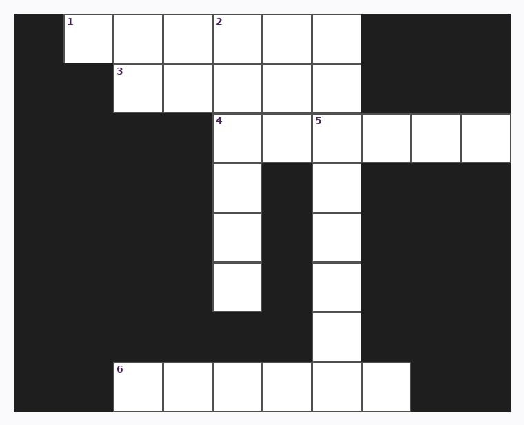 Solve all six clues and fill in the grid to find your next destination.